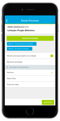 Envie processos para uma ou mais unidades com retorno programado.