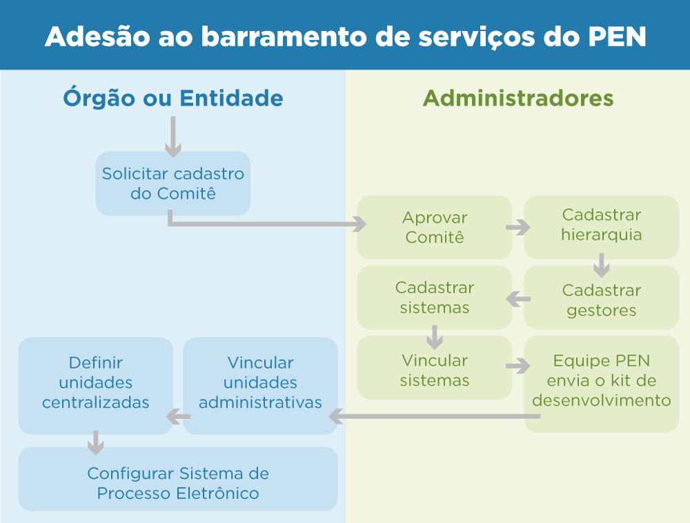 O último passo é integrar o Sistema de Processo Eletrônico do órgão com os serviços de integração do Barramento de Serviços do PEN.